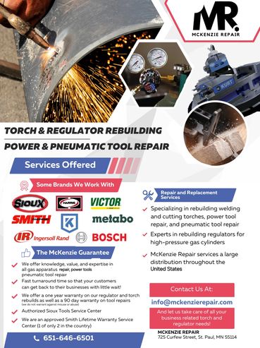 We repair Regulators, Torches, Electric and Pneumatic Tools, Kurt vise's,